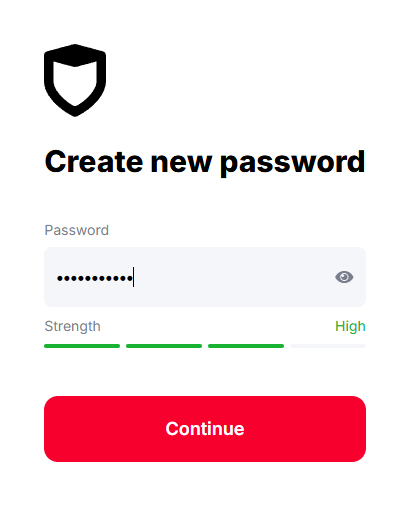 Enter a new password then press Continue. You will be automatically logged in to your .