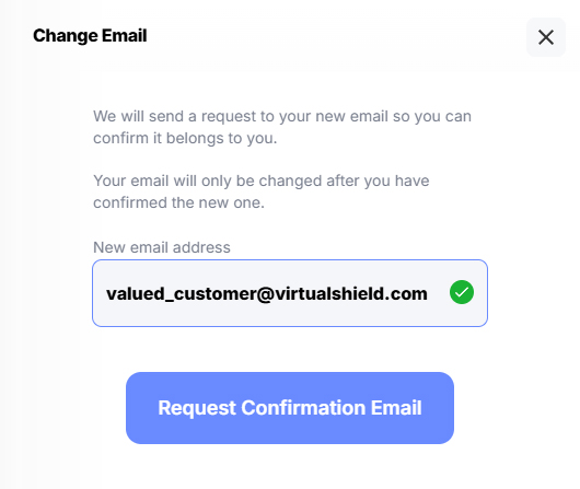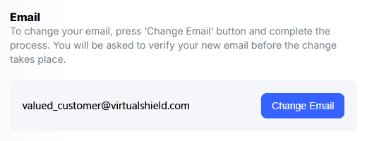 You may need to log out and log back in to the VirtualShield app on your device(s) using your new email address.