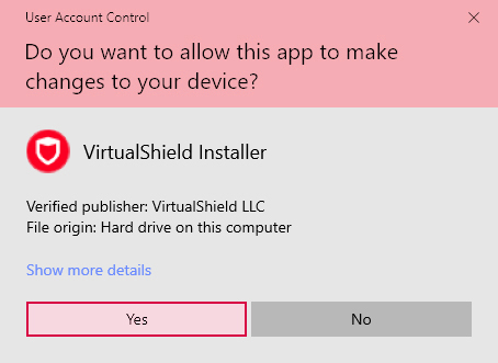 If you are prompted to allow VirtualShield to make changes to your device, choose Yes to continue.