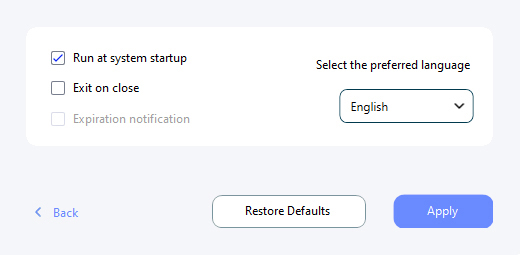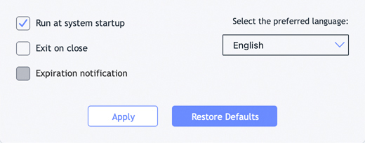 Run at system startup option on or off, then click Apply to save your changes.