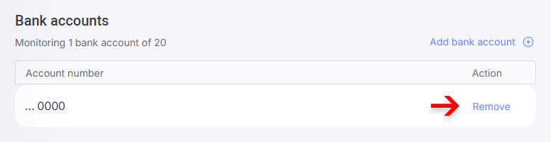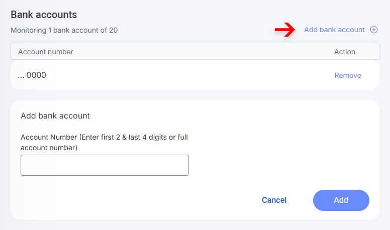 If you've reached the maximum limit for your account, you can follow the exact same steps to remove a Bank account you added previously. Just be aware it will no longer be monitored by our system.