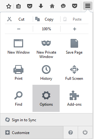 Click the Menu button near the top-right, then select Options from the popup menu.